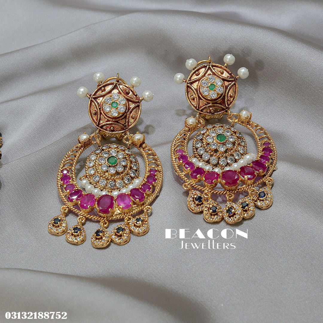 Choker Set in Ruby, Jade, Pearls and Zircons