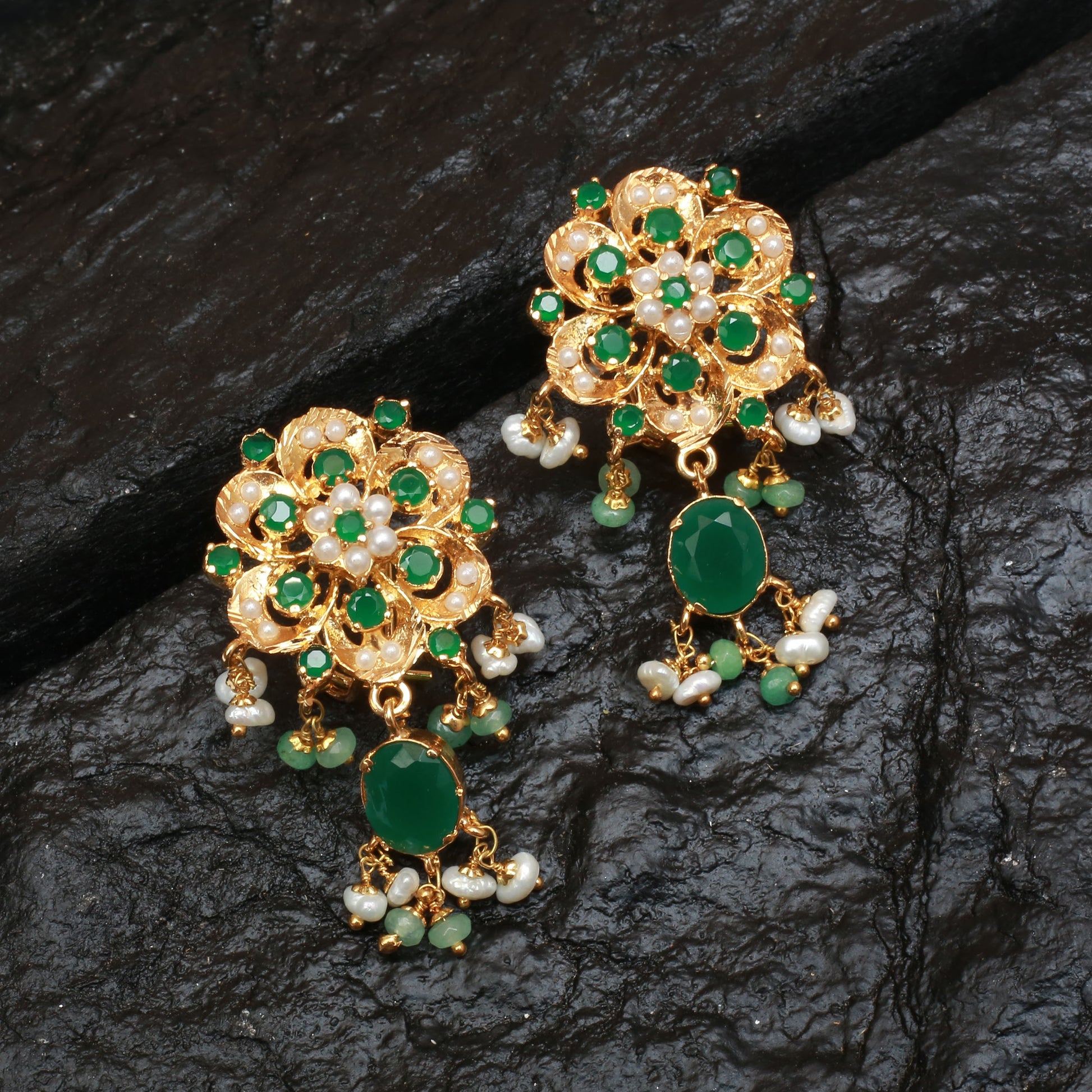 Earrings With Greens Jades