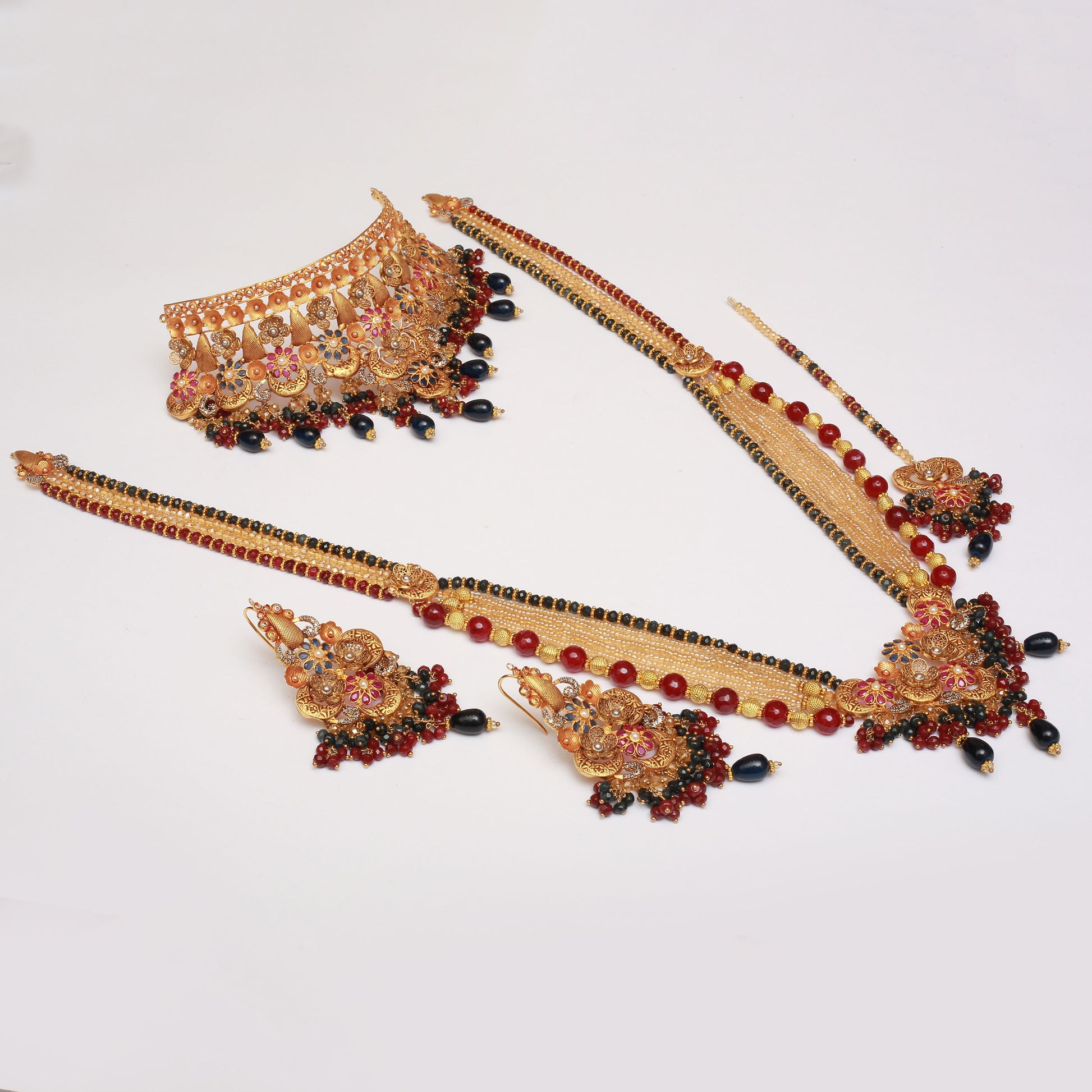 Necklace Set With Mala Tika Earrings